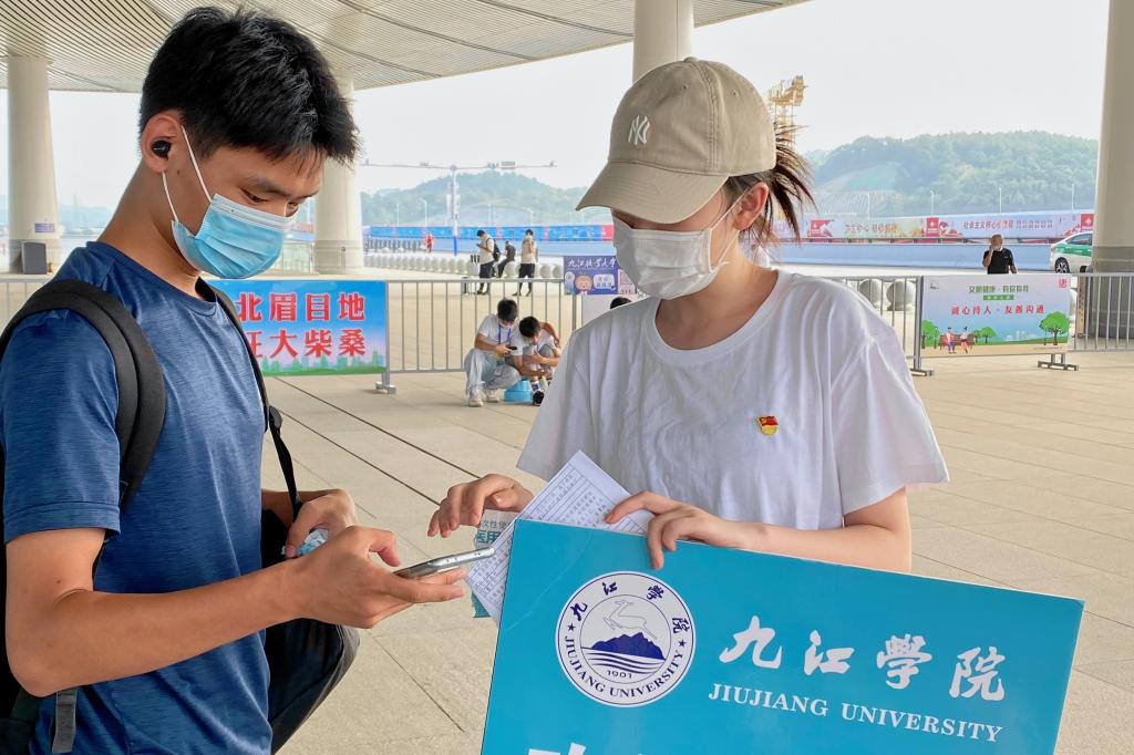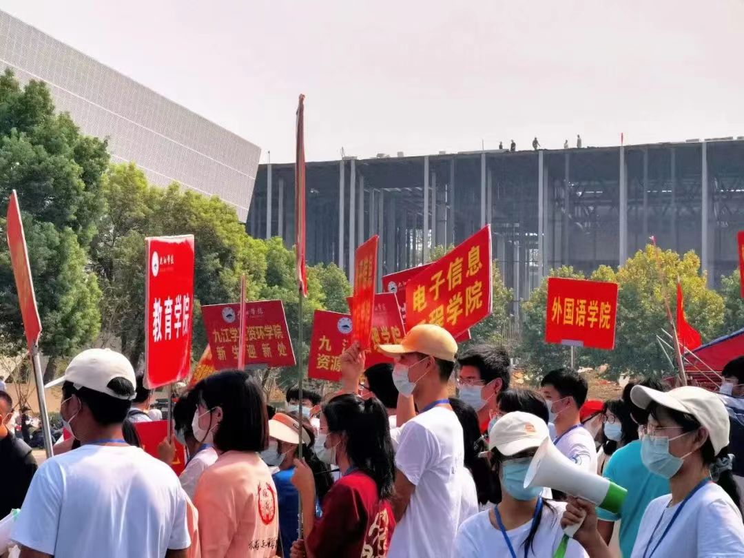 在九江火车站、汽车站、校门口、体育训练中心内外、宿舍楼前,学校积极组织动员师生为新生报到开展志愿服务。据统计,约600名九院师生参与迎新志愿服务,为新生与九院的初见留下美好的温馨回忆。