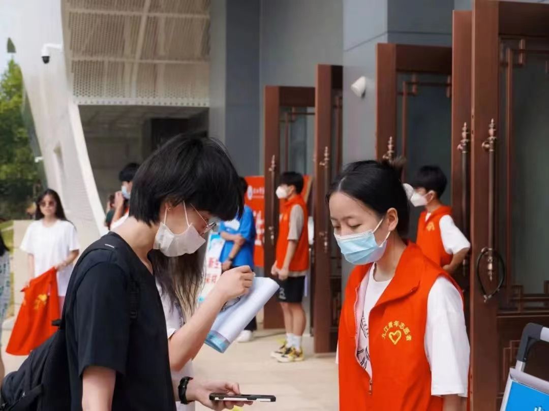 迎新志愿者高高举着所在学院的指示牌引导新同学,热情洋溢的学长学姐介绍着学校的信息。确认入学信息、分班分寝室、领取学生卡……新同学在迎新志愿者们的引导下有序完成开学报到。这些刚刚从天南海北奔赴九院的新生,很快缓解了奔波的疲惫和初入校园的拘谨。
