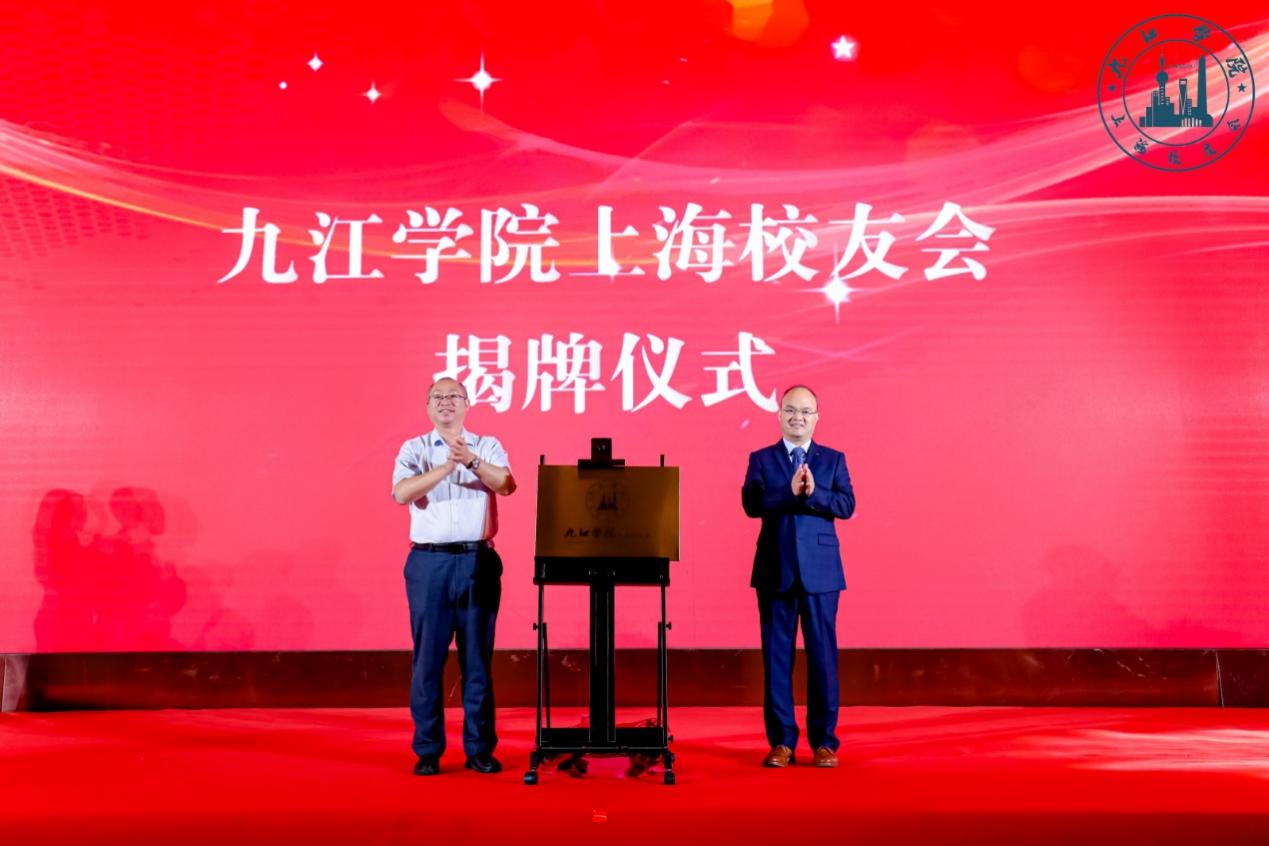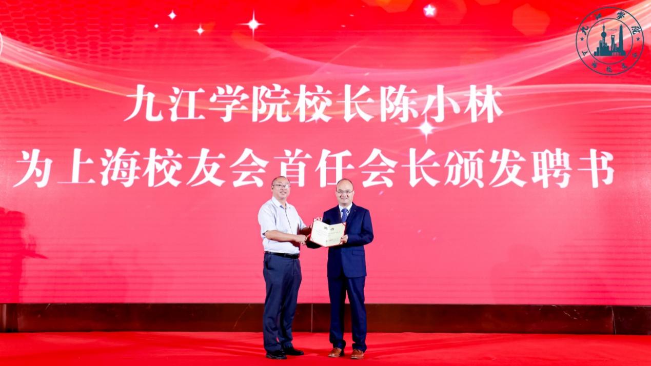 陈小林为首届会长汪中于颁发聘书,并共同为上海校友会成立揭牌。
