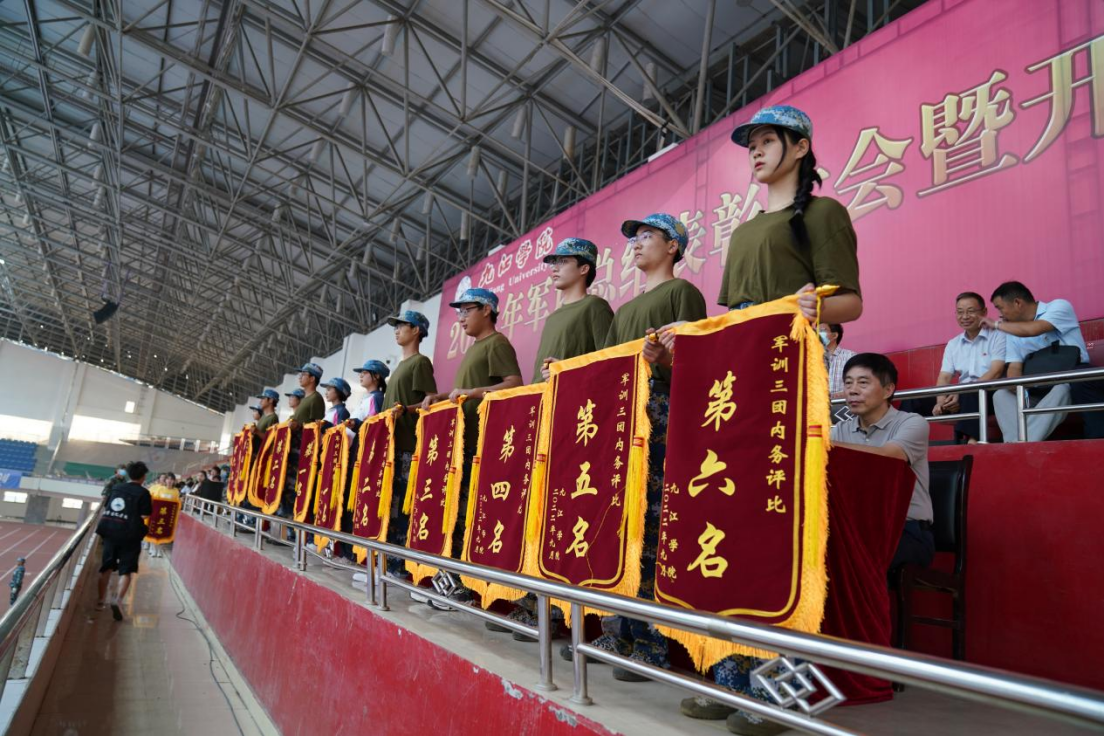 学校领导、武警九江支队领导给获奖连队颁发锦旗