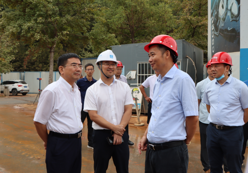 在施工现场,赵伟向蒋文定介绍了综合体育馆施工建设进展情况。
