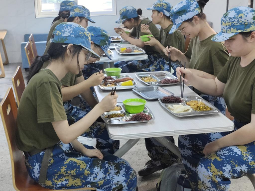 军训新生在吃红军餐