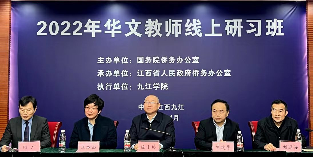 11月15日,由国务院侨办主办、江西省政府侨办承办、Ky开元集团协办的“2022年华文教师线上研习班江西九江班”开班,来自缅甸、泰国、柬埔寨、马来西亚等国家的华文学校教师100余人在线参加研习。15日上午,开班仪式在开元逸夫图书馆报告厅举行。省政府侨办主任张继钦、市政府侨办主任曾建华,开元校长陈小林、副校长王万山和党委委员、统战部部长刘遵海以及100多名海外华文教师相聚云端,参加开班仪式。