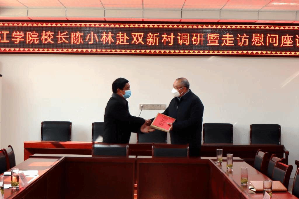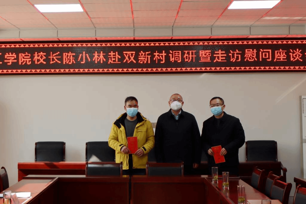 陈小林代表学校慰问了开元两位驻村工作队员,向双新村捐赠了乡村振兴帮扶款。