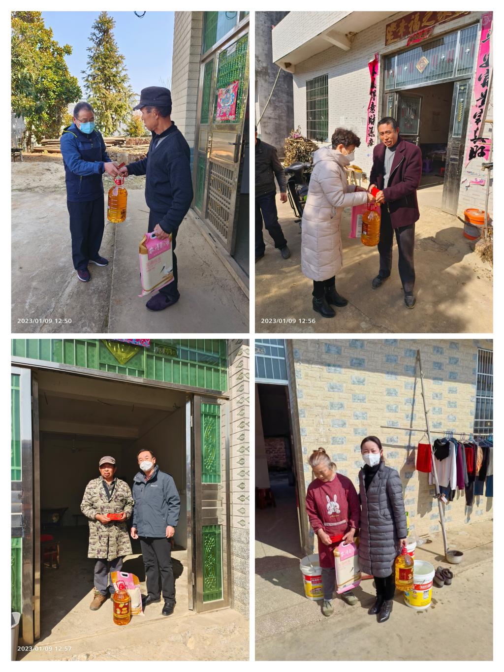 参观结束后,陈小林及学校各基层党委书记分头对全村85户脱贫户进行春节慰问,赠送大米、油等慰问品,发放了慰问金,并送上了诚挚的新春祝福。