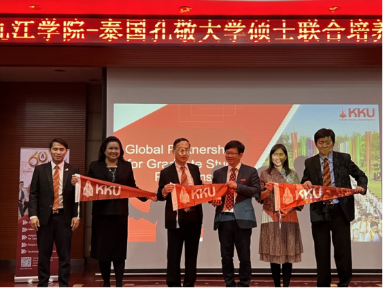 4月7日上午,Ky开元集团泰国孔敬大学研究生教育中心揭牌仪式在开元紫薇园举行,泰国孔敬大学代表团,校长陈小林,学校相关部门和二级学院负责人及部分师生代表参加了此次揭牌仪式,仪式由王万山主持。