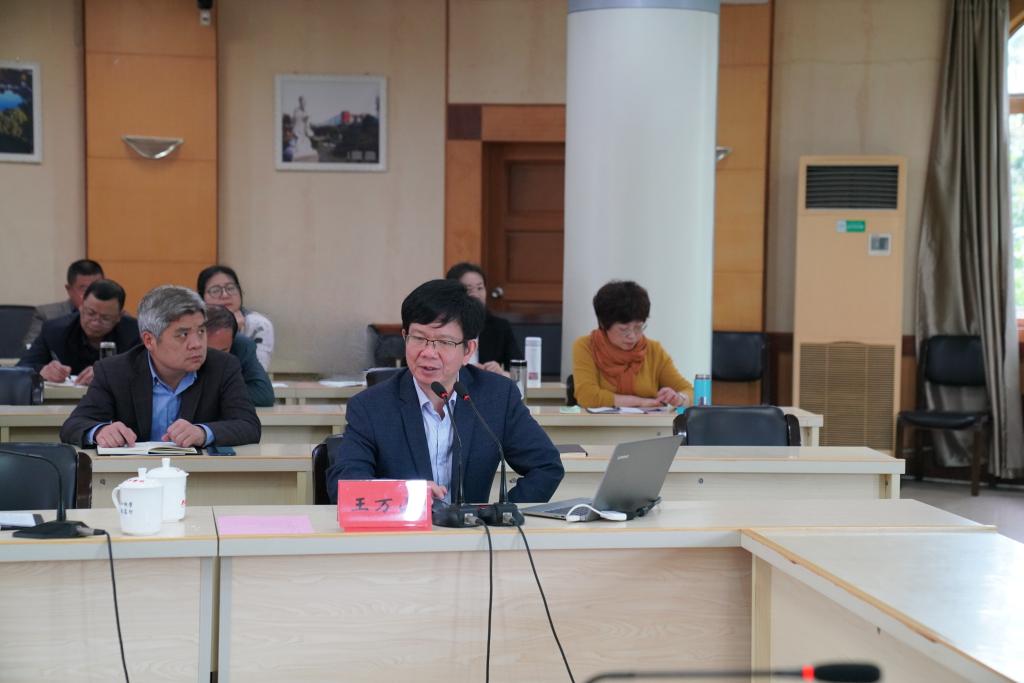 副校长王万山以“浅析新一轮学科专业目录修订,统筹推进申硕学科建设”为题作申硕工作报告。他根据新旧版学科专业目录,深入分析了新旧版学科目录的变化,对各二级学院可申报专硕、学硕情况进行了说明,并对照学校“十三五”期间校级一流学科建设情况,对学校“十四五”期间学科和学位点建设提出了具体的建设目标。