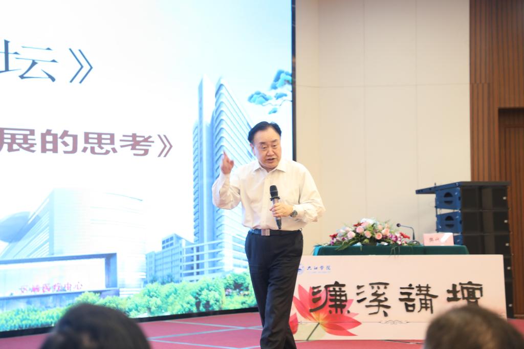 在九江宾馆宴会厅,樊代明院士作了题为《疫后医学发展的思考》的精彩学术讲座。九江市人民政府副市长容长贵,学校党委书记赵伟、校长陈小林,九江市卫健委主任郑健林,九江市高层次人才联谊会副会长兼秘书长吴晓梅等参加活动。学术活动由副校长王万山主持。附属医院班子成员,医学部、药生学院、护理学院、口腔医院、二附院等领导,教职工及学生代表等共500余人聆听了讲座。