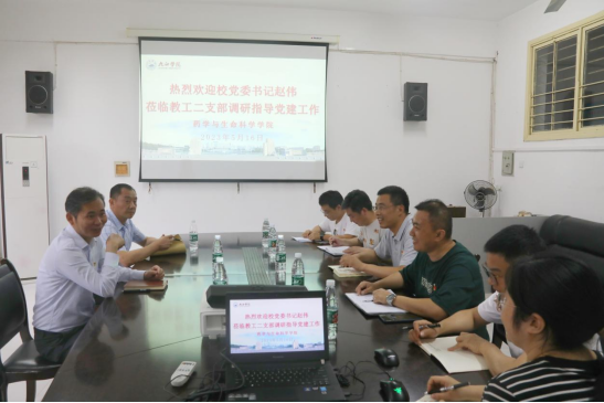 在药生学院,赵伟听取了该院关于主题教育、基层党建以及高层次人才工作情况汇报以及该院教工第二党支部书记姜登钊关于支部建设、人才培养、服务地方经济发展等情况的汇报。