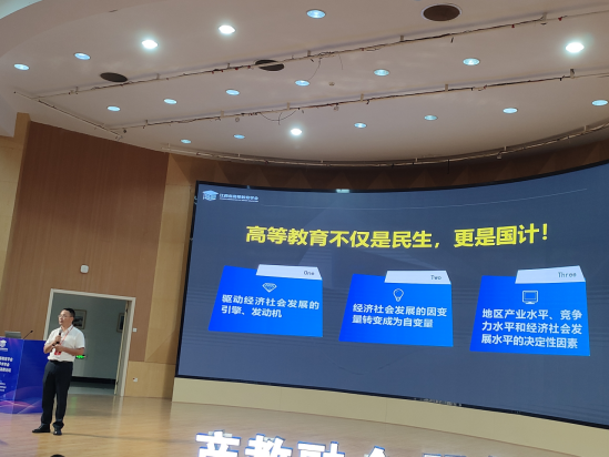 省委教育工委委员、省教育厅副厅长、新当选的江西省高等教育学会会长刘小强作“产教融合、服务江西”的主题讲话。教育部科学技术与信息化司司长雷朝滋、河南省高等教育学会会长、教育厅副厅长刁玉华、北京邮电大学副校长王文博等省外专家围绕“推动科技创新高质量发展、如何推进产教融合及产业学院建设”等方面发表主旨演讲。南昌大学党委书记罗嗣海、华东交大党委书记柳和生等省内知名学者,分别围绕“江西高校高质量发展、产教融合服务地方发展、构建产教融合命运共同体”等主题作报告。