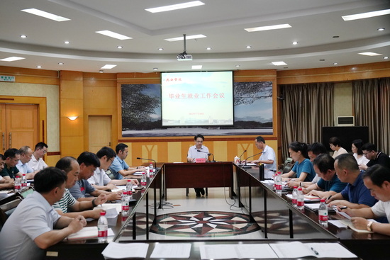 为进一步贯彻落实全省高校毕业生就业工作会议精神,7月10日,学校召开全校毕业生就业工作会议,对毕业生就业工作进行再研究再部署。校党委书记李明斌出席会议并讲话,他强调,学校各二级学院和部门要深刻认识做好高校毕业生就业工作的重大政治意义,站稳人民立场,利用一切可利用的资源,调动一切可调动的积极因素,切实把做好毕业生就业工作作为一项紧迫的政治任务抓紧抓实抓好,作为检验当前学习贯彻习近平新时代中国特色社会主义思想主题教育成果的具体体现。副校长王殿元主持会议。