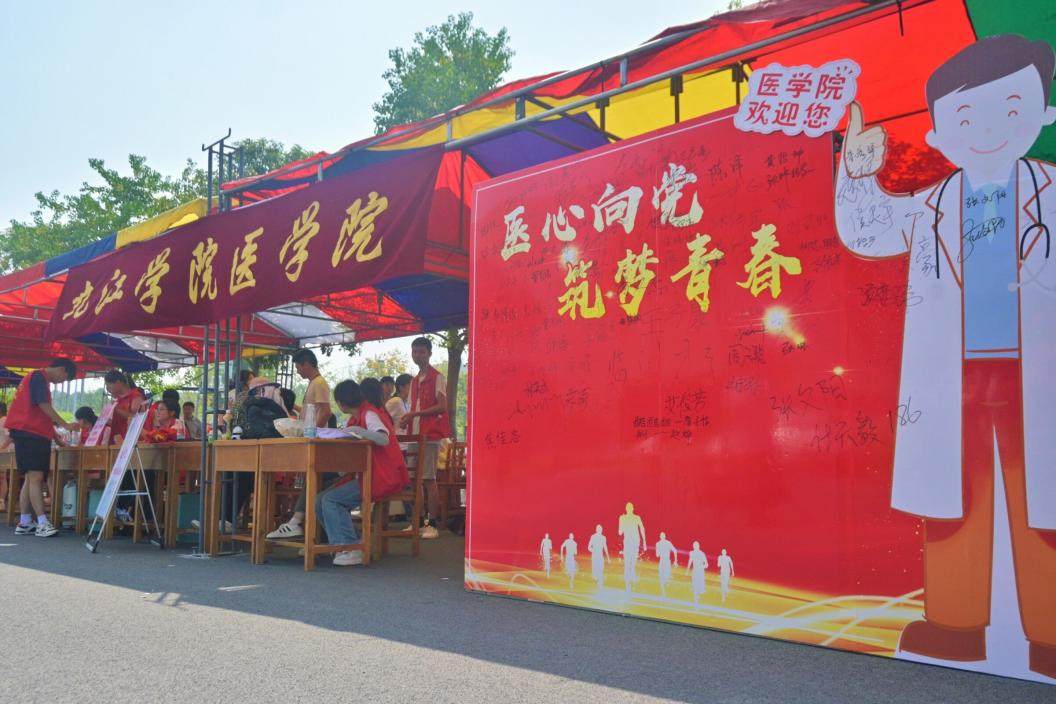 在迎新现场,各学院结合自身特色,精心设计了宣传展板、背景墙等,开展丰富多样的花式打卡留影活动,仪式感满满。