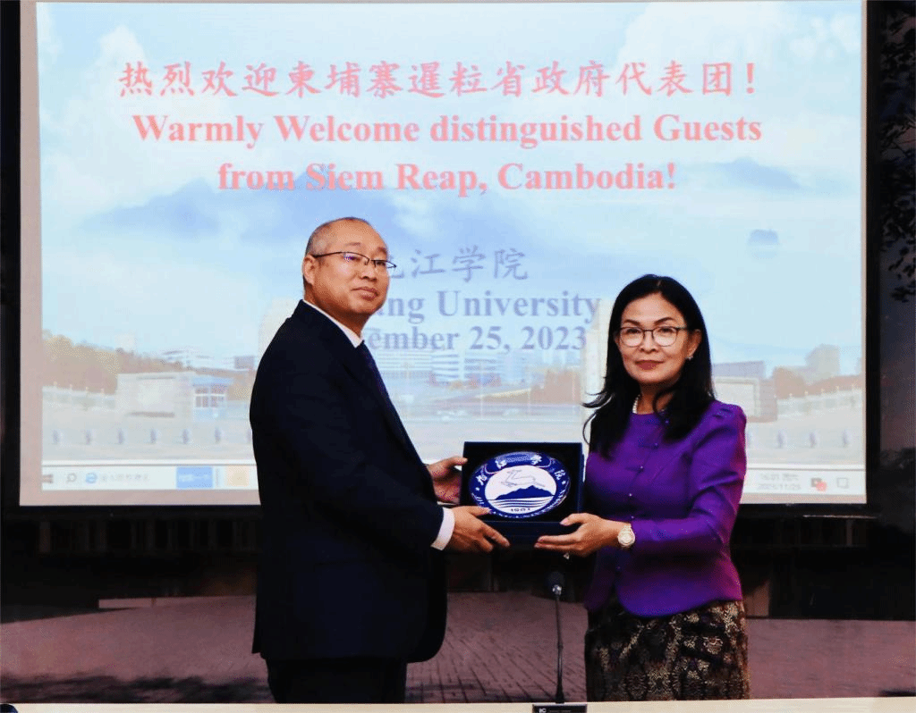 11月25日下午,柬埔寨暹粒省副省长育索毗率代表团一行6人到访开元,校长陈小林亲切会见了育索毗一行。江西省外办二级巡视员黄美玲,九江市政府办公室,开元国际合作交流处、国际交流学院、旅游学院和柬埔寨研究中心有关负责同志参加了座谈会。