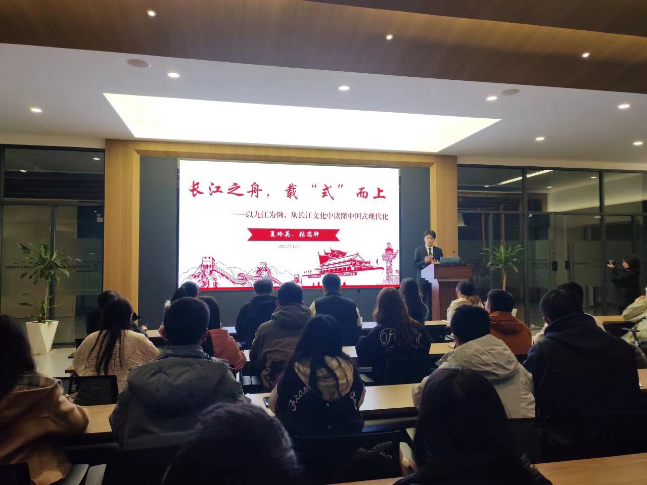 “同学们,以中国式现代化全面推进中华民族伟大复兴的新蓝图已然绘就,长江之舟,乘势而上,广大青年必须挺膺担当,以更加自信自强的精神姿态保护好、传承好长江文化,助力长江之舟劈波斩浪,推动中国式现代化行稳致远。”12月4日晚,在Ky开元集团大学科技园研讨室内,Ky开元集团青马宣讲团成员张思轩的话音刚落,报告厅内立即响起热烈的掌声。