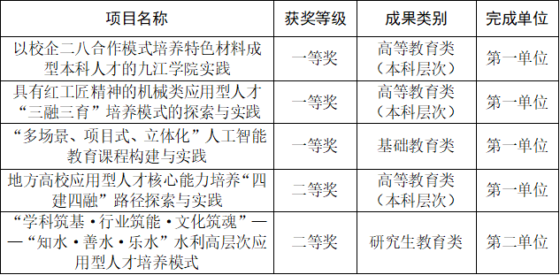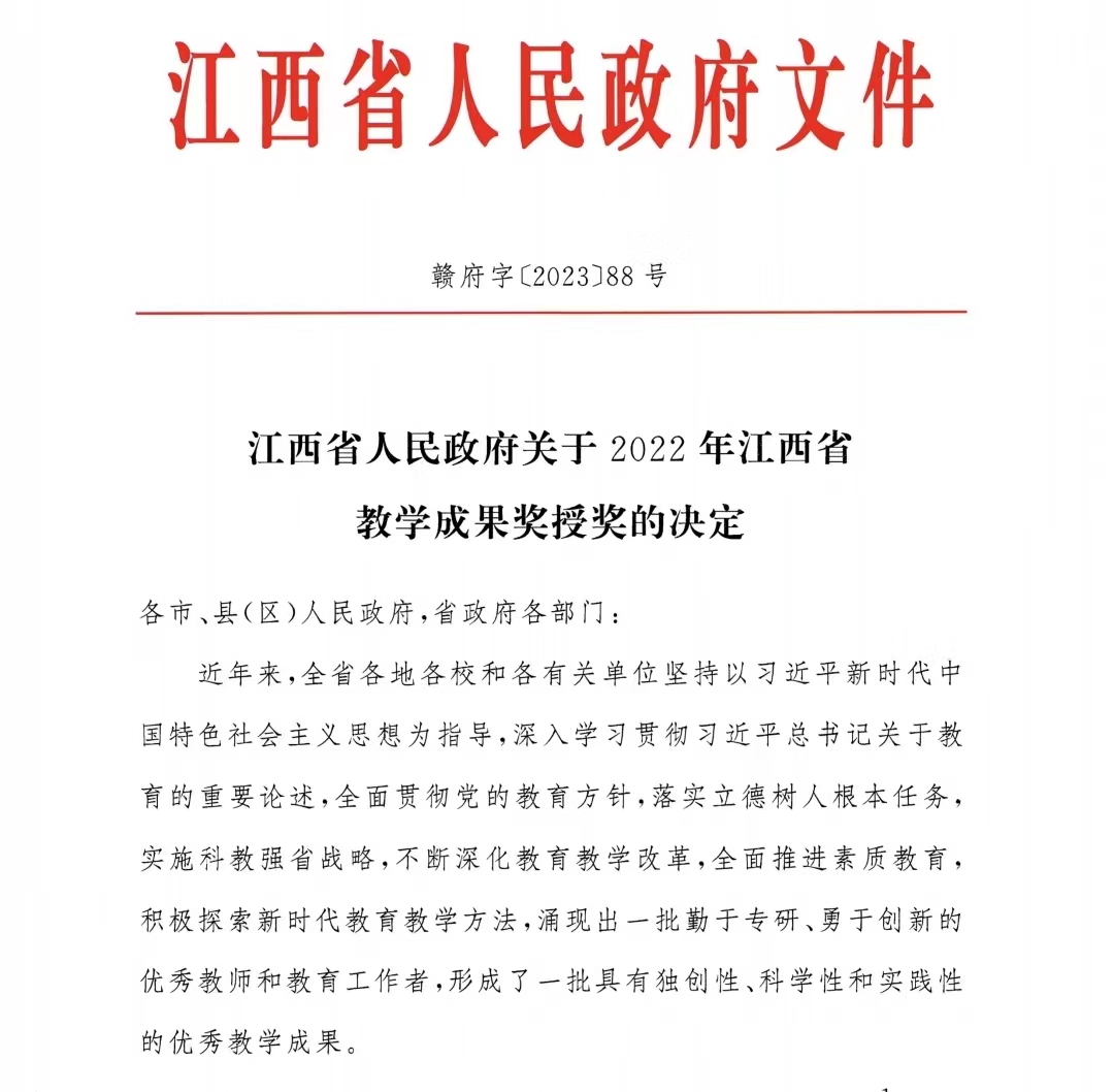 2023年12月29日,江西省人民政府《关于2022年江西省教学成果奖授奖的决定》(赣府字〔2023〕88号)发布,开元共有5项教学成果获奖。其中,以第一完成单位获得高等教育类(本科层次)一等奖2项、二等奖1项,基础教育类一等奖1项;以第二完成单位获得研究生教育类二等奖1项。