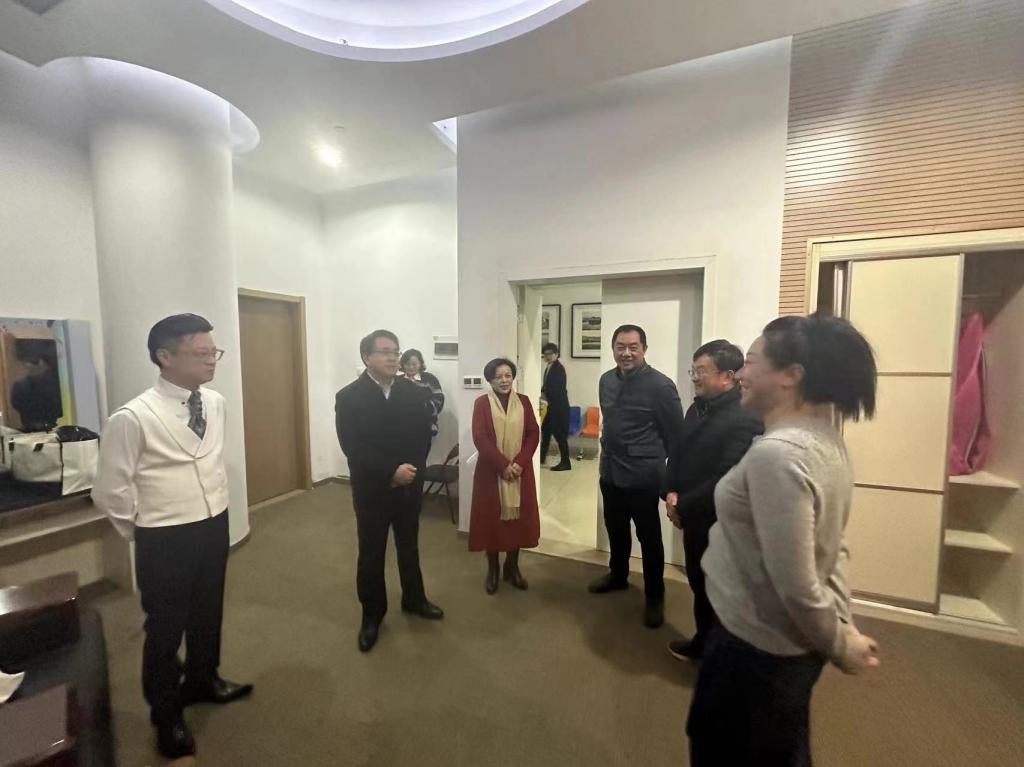 音乐会开始之前,学校党委书记李明斌到后台看望了参加演出的师生,鼓励他们以饱满的精神,以最好的面貌为九江市民呈现一台精彩的演出。