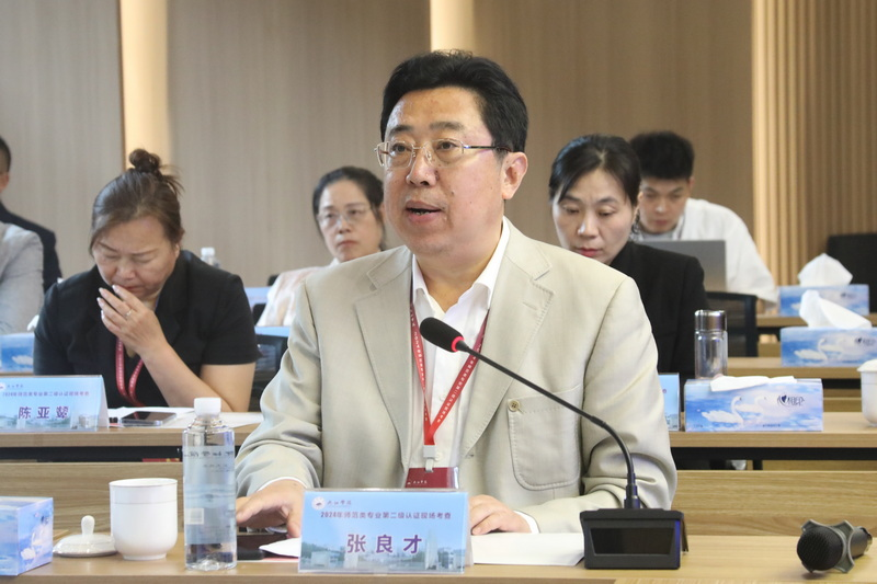 学校层面反馈会前,专家组成员在二级学院层面分别进行了反馈。汉语言文学、地理科学、美术学和体育教育4位专业负责人对认证专家的反馈意见作表态发言,他们表示,学院将根据专家组反馈意见积极整改,认真排查,有效落实,不断反思,持续改进,将注重发挥专业认证的辐射作用,对照标准,融合教育新理念,践行新课标课程理念,为提升专业育人质量努力奋进。