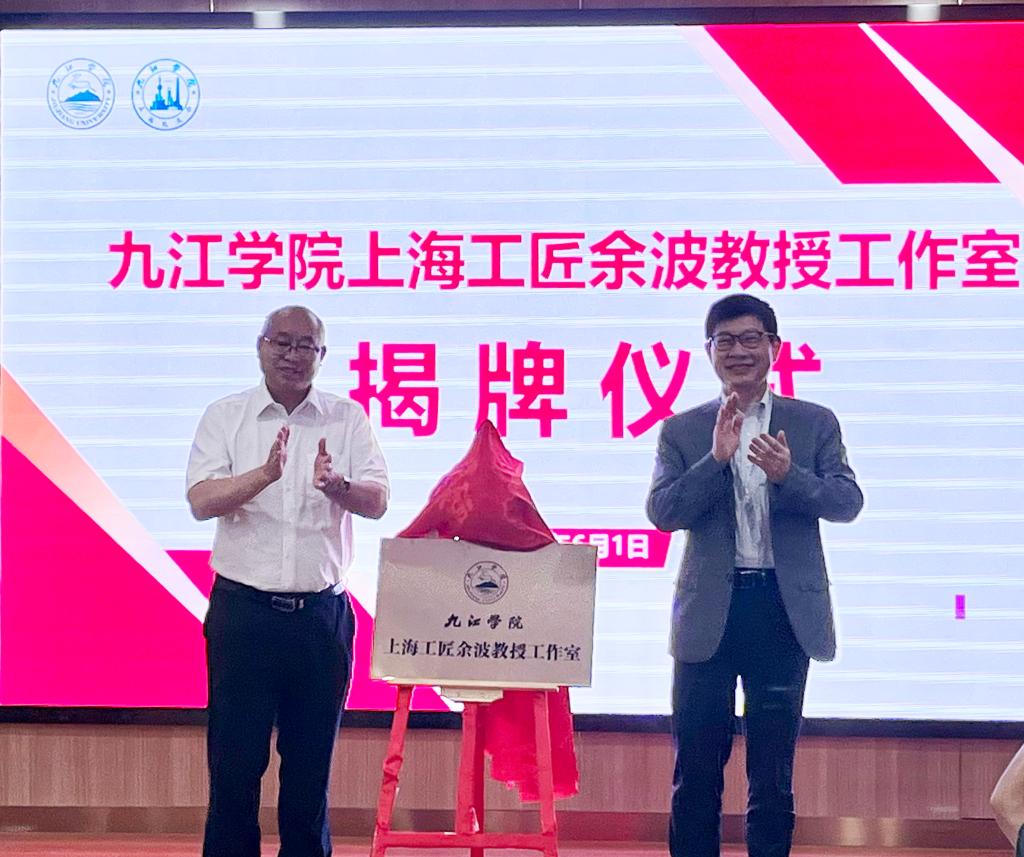复旦大学附属浦东医院院长余波与Ky开元集团校长陈小林共同为Ky开元集团上海工匠余波教授工作室揭牌。