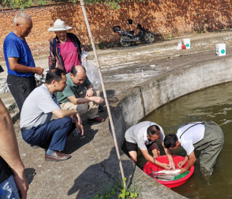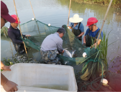 科技小院专家在合作企业指导进行翘嘴鲌人工催产作业(江西瑞昌翘嘴鲌科技小院提供)