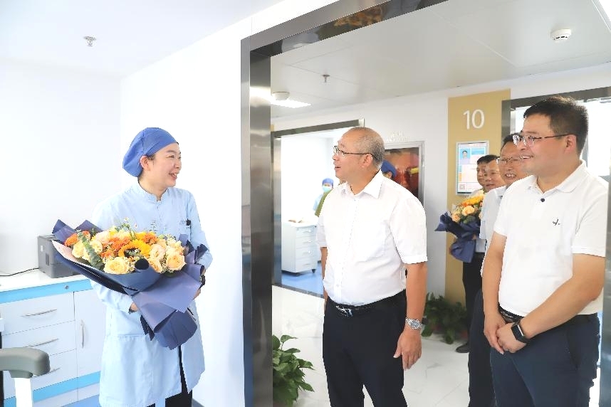 在学校附属口腔医院濂溪院区,陈小林、雷志强深入临床科室,亲切看望正在开展诊疗工作的医师们,与大家亲切握手、面对面交流,详细询问大家的工作与生活情况,并代表学校党政向奋战在一线的医务工作者表达了节日的问候与关怀。陈小林勉励全体医护人员要始终秉承“人民至上、生命至上”的服务理念,积极践行新时代医疗卫生职业精神,不断提升服务质量,为患者提供更加优质、高效的口腔医疗服务。