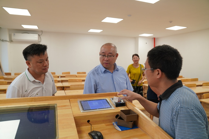 检查组在研究生楼重点查看了教室的准备情况,仔细检查教室的设施设备是否完善,桌椅、黑板、投影仪等教学工具是否齐全且处于良好状态等。
