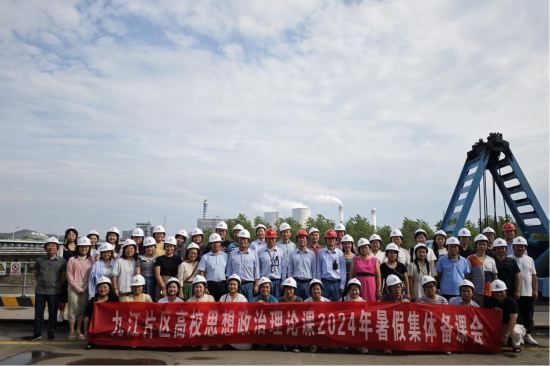 “大思政课”要善用之,一定要跟现实结合起来,要高度重视思政课的实践性,把思政小课堂和社会大课堂结合起来。本次集体备课会还参观了湖口银沙湾工业园区,现场感受江西的新质生产力发展现状。老师们来到国能神华九江发电有限责任公司,在工作人员的带领下依次参观了电厂的办公楼、煤场、集控室,神华码头等,每到一处工作人员都详细地讲解了电厂的生产运作流程、工作环境、环保理念,同时讲述国有企业如何在应对外部环境变化和重大风险挑战下践行国之大者、国之所需的使命担当。通过深入一线参观考察,让老师们走出教室和校园,打开了大视野,有助于把丰富的实践、鲜活的人物、生动的故事引进课堂,把家事、国事、天下事引入课堂。
