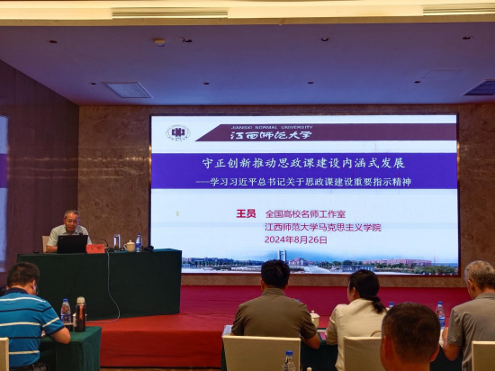 习近平总书记强调:“思政课的本质是讲道理,要注重方式方法,把道理讲深、讲透、讲活。”教育部全国高校思政课名师工作室主持人、江西师范大学马克思主义学院王员教授做了题为《守正创新推动思政课建设内涵式发展——学习习近平总书记关于思政课建设重要指示精神》的学术报告,报告从思政课建设与党的创新理论武装同步推进;思政课要彰显马克思主义的真理力量;思政课的本质是讲道理;增强思政课的“三性一力”阐释思政课要把道理讲深讲透讲活,守正创新推动思政课建设内涵式发展,不断提高思政课的针对性和吸引力。