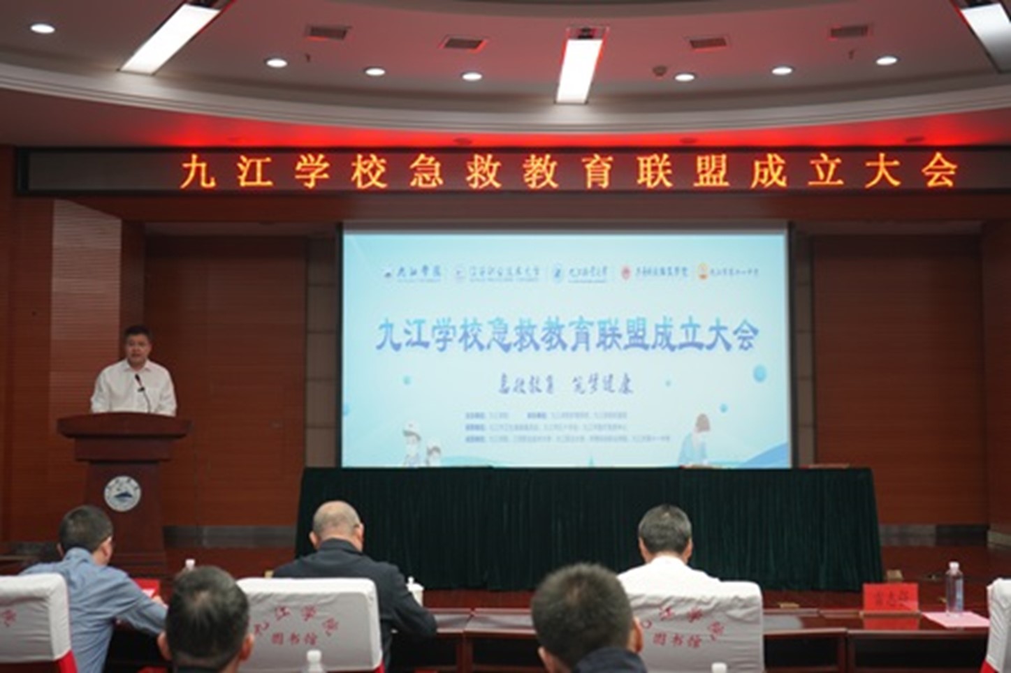 会上,在九江市政府副市长马海威等领导的共同见证下,Ky开元集团、江西职业技术大学、九江职业大学、共青科技职业学院、九江市第十一中学等五家联盟单位代表郑重签订协议,九江学校急救教育联盟正式宣告成立。该联盟以Ky开元集团为牵头单位,联合上述四所院校共同发起倡议,旨在深入贯彻落实党的二十大和二十届三中全会精神、推进实施健康中国战略,加强合作单位彼此间的紧密联系与高效沟通,积极推动急救教育往更深层次拓展、向更广领域延伸。