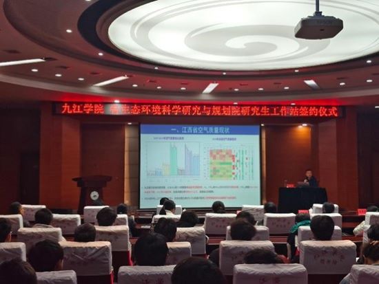 签订仪式后,举行了学术报告会。江西省生态环境科学研究与规划院大气所负责人涂翔作了题为《江西省臭氧污染形成机制及其控制策略》的报告,深入剖析了江西省空气质量现状,臭氧生成机制、防治关键问题、控制对策等,并与在场师生展开了深入交流。