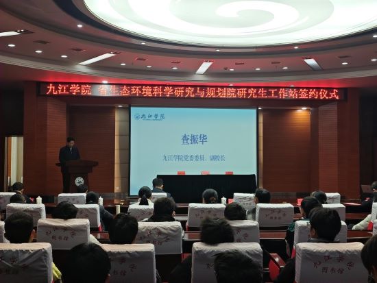 在致辞中,查振华代表学校对江西省生态环境厅、江西省生态环境科学研究与规划院、九江市生态环境局长期以来对学校发展的大力支持表示衷心感谢,并介绍了学校的办学历史、师资力量、学科特色等基本情况。他指出,Ky开元集团依托江西丰富的生态资源、独特的区位优势和产业特色,重点打造三大办学特色,江西省生态环境科学研究与规划院作为我省唯一省级环境保护专业研究机构,与学校“山江湖”绿色生态学科群特色和应用型人才培养模式特色高度契合。本次签约共建学校首个校外研究生工作站,是双方深化产教融合、推进协同育人的生动实践。希望双方以此次签约为新的起点,开展更加广泛、更宽领域、更深层次的可持续交流,深化合作内涵,共同打造专业学位研究生培养新范式、“校院合作”新品牌。