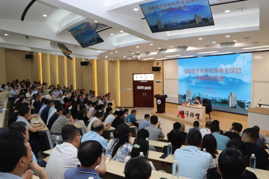 陈小林在主持专题讲座时指出,施芝鸿同志以深厚的理论功底和严密的逻辑体系,对当前的经济形势和席卷全球的关税战贸易战作了解读。从报告中我们深刻感受到了党中央总览全局的战略思维,特别是习近平总书记把大学生的高质量充分就业装在心里,充分体现了一个大国领袖的人民情怀;同时,在对由美国挑起关税战贸易战的解析中,我们看到了其违背世界人民利益、违背多边贸易规则的本质和危害,相信在习近平总书记领航掌舵和党中央集中统一领导下,一定能够赢得这一场关税战和贸易战,我们一定会在中华民族伟大复兴的大道上大踏步前行。