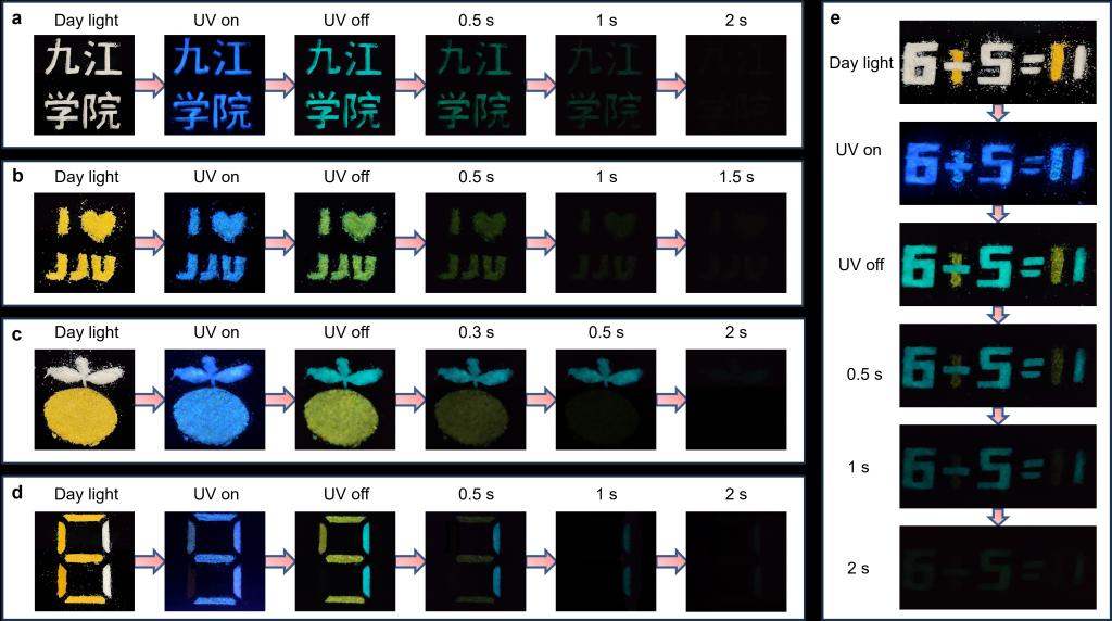 更为重要的是,通过磷光共振能量转移(PRET)技术,将荧光素分子精准掺杂至1,1-DB中,成功实现了多色余辉智能新材料的构筑,并构建了多重防伪信息加密体系。本研究通过系统研究N-B-N结构单元与RTP性能的构效关系,为设计性能更为优异的RTP材料提供了重要参考,有望推动BN分子体系RTP性质的深入研究。