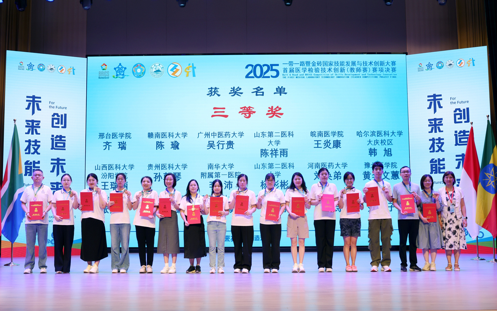 “一带一路”暨金砖国家技能发展国际联盟医学检验分委会主任委员夏薇教授在致辞中指出,本次大赛是“一带一路”医学检验技术赛项的第一个本科赛事,是从无到有的、开创性的赛事,检验分委会将进一步深化与国内外检验院校的合作,加快推动医学检验教育标准与国际前沿同步,培养具备国际化视野的技术技能人才。