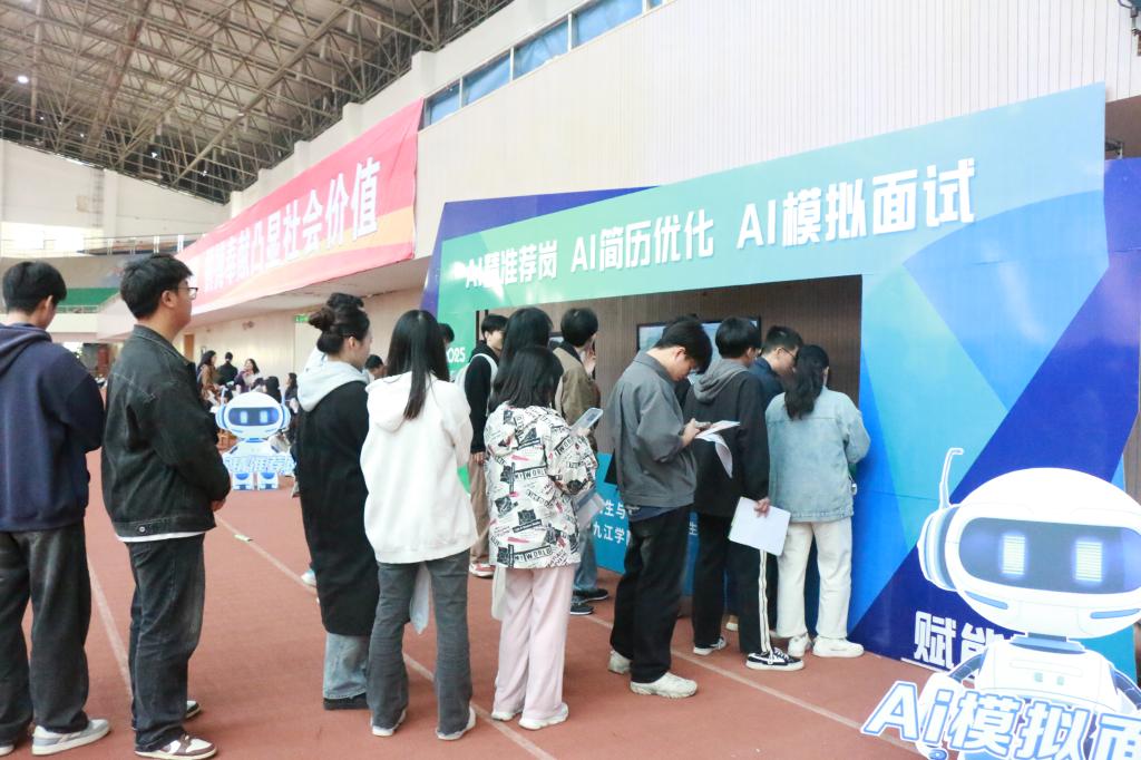 为提升服务精准度与参会体验,本次招聘会创新设置两大功能区,构建“全流程、多维度”的一站式就业指导服务体系。推出“现场岗位精准匹配”“简历优化”“就业政策咨询”“求职指导”“云端选岗”等服务。Ky开元集团就业之家负责的“AI+人工”就业指导功能区,依托“AI就业赋能系统”与专业就业指导老师,为毕业生提供一站式求职帮扶;作为省教育厅指定“1+1+N”合作单位,九江经济技术开发区设立“AI就业岗位”专区,为广大毕业生提供全网海量岗位信息,实现与经开区企业人才需求的精准对接。两大特色专区吸引了众多同学驻足咨询,拓展了毕业生的就业渠道与发展空间。相关安排不仅丰富了岗位供给,也有效促进了区域人才流动与产业协作。