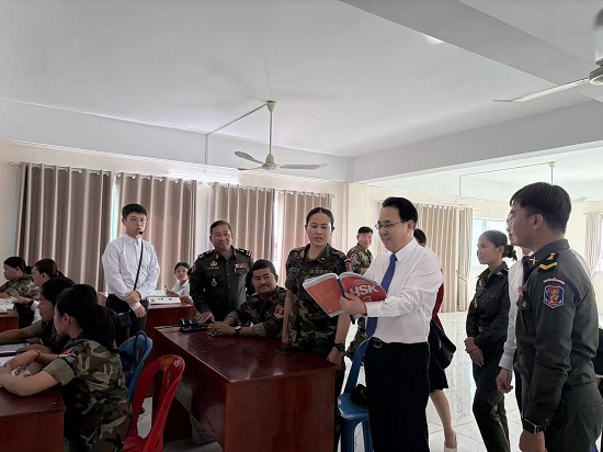 访柬期间,李明斌还参观了金边警备旅孔子课堂,并与柬埔寨王家研究院院长宋独举行工作会议。双方就进一步加强两校合作、深化孔子学院内涵建设、推动柬埔寨中文教育高质量发展等议题进行了务实交流。