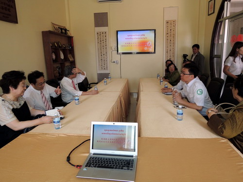 3月16日,日本关西外国语大学理事长谷本榮子在关西外国语大学孔子学院院长靳卫卫教授及事务局长吉川佳孝的陪同下,访问柬埔寨王家研究院孔子学院。柬埔寨王家研究院院长、孔子学院理事长克罗提达(Khlot Thyda)院士、孔子学院院长谢莫尼勒(Chea Munyrith)、中方院长帅式毅、汉语教师志愿者及孔子学院官员班学员热情迎接。