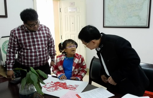 剪纸是中国最为流行的民间艺术之一,有着悠久的历史,是我国宝贵的非物质文化遗产之一。朱扑光教授是瑞昌—中国剪纸之乡的一位民间艺术家,他说这是自己第一次收外国徒弟,意义重大,希望Isna能认真的学,勤奋的练。詹局长也对Isna提出了要求和期望:希望她能认真学习好这门中国传统手工艺,将来回国后,使其发扬光大,成为一名中孟文化交流的使者。