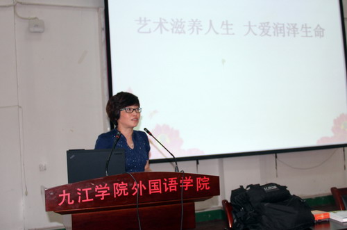 5月13日下午,美国肯塔基州路易维尔大学曾唯斌教授在香远楼三楼报告厅为外国语学院师生作了一场题为“艺术滋养人生”的学术报告。九江市外事办副主任吴小船、科长于红,九江职业大学国际交流处处长曹迁平,外国语学院领导以及师生200余人参加,外国语学院院长韩琨主持报告会。