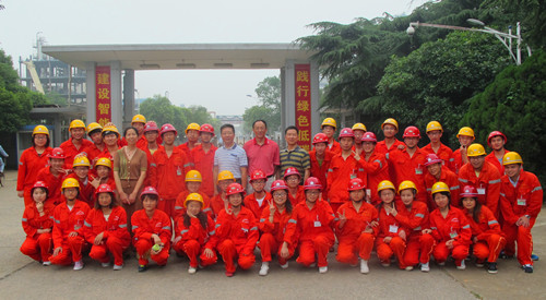 最后,院领导老师以及全体同学在热情、亲切、愉快的气氛下在九江石化总厂门口合影留念,伴随着照相机的“咔擦”声,圆满的结束了今天的实习任务。