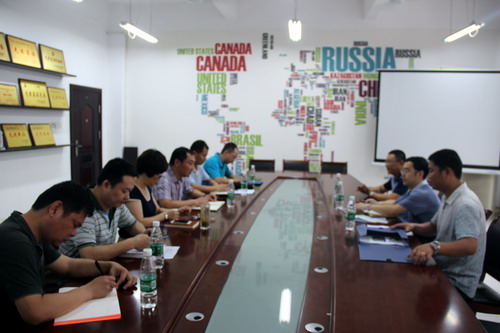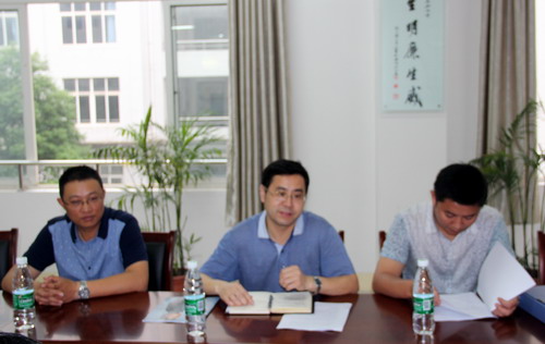 肖国丰处长一行实地参观了PUE创业实践区,查阅了相关资料,并和在PUE创业实践区的同学进行了深入的交流。随后在会议室听取了外国语学院创业工作汇报,外国语学院院长韩琨、党委书记杨杰分别就PUE创业实践区的详细情况和外国语学院就业创业工作作了介绍,党委副书记彭晓汇报学院近期创业工作,各科(室)负责人就各自分管的工作进行了专题汇报。