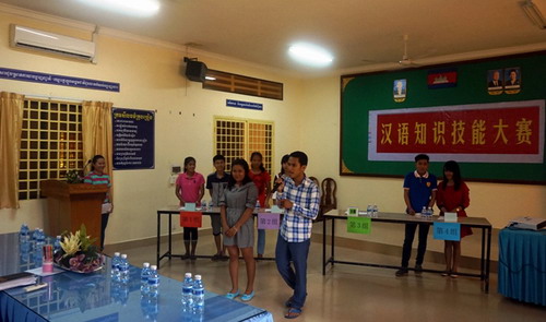 此次比赛包括问答题、听写题、表达题和表演题。参赛选手都作了充分的准备,现场的竞争可谓异常激烈。在知识问答环节,汉语知识、中国国情、中国文化以及柬埔寨文化一点也没有难倒我们的选手们。表演阶段,参赛选手更是集唱歌、表演于一身,充分展示了他们的多才多艺和组员之间相互配合的默契。最后的拉票环节选手们或发表小演讲或说笑话逗的现场观众开心,卯足了劲的为自己的队伍拉分,更是将比赛推向高潮。
