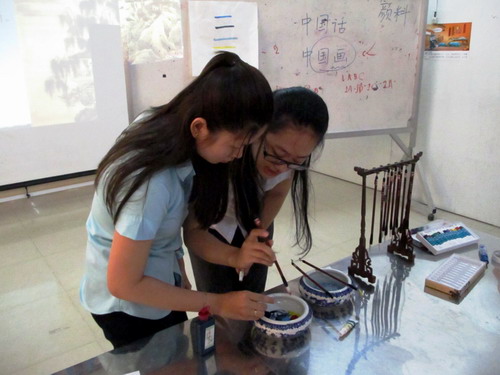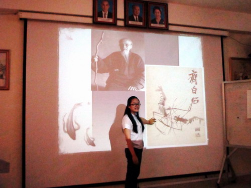 7月17日,柬埔寨王家研究院孔子学院在孔子学院二楼影音室举行“每周中国文化活动”之中国国画文化讲座。为了让孔子学院的更多学生了解和体验到中国文化,此次的“每周中国文化活动”时间改为11点——12点。本次讲座的主讲者为Ky开元集团选派的孔子学院汉语教师志愿者周亚莉,孔子学院师生代表共50余人参与了此次活动,柬埔寨新闻频道(CNC)全程录播。