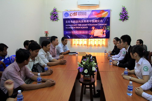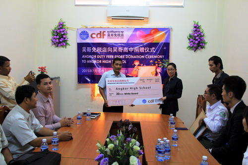 7月15日,中国免税品(集团)有限责任公司暹粒吴哥店店长阴云先女士率领店员访问柬埔寨王家研究院孔子学院吴哥高中孔子课堂,并向孔子课堂的合作单位吴哥高级中学捐赠了20块教学白板。