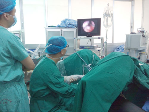 患者李先生,79岁,家住都昌县,近段时间尿频尿急严重,而且排尿不畅。在当地医院检查诊断为前列腺增生,因自己是AB型RH阴性血(即人们常说的“熊猫血型”),考虑到前列腺手术大出血风险大,遂转入临床医学院/附属医院泌尿外科接受治疗。临床医学院/附属医院泌尿外科黄鹏主任、宋秋元副主任决定为患者实行微创等离子腔内前列腺切除术。手术直接从患者的尿道插入镜鞘,在“高清电视”引导下,采用等离子电刀,将突入尿道肥厚增生的腺体完整地切除,再将切下的腺体从尿道吸出体外,手术历时35分钟,顺利完成。患者术中几乎无出血,术后恢复快,排尿通畅。