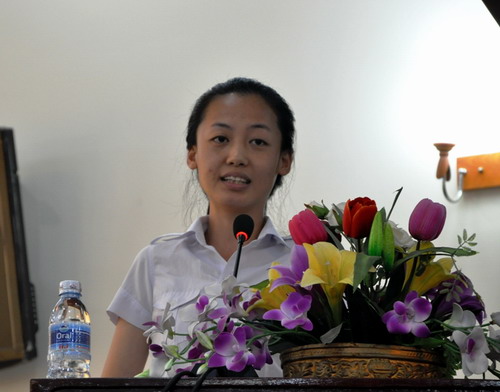 谢莫尼勒和帅式毅在致辞中对孔子学院的工作做了简要介绍,希望汉语教师志愿者们离开柬埔寨后要做柬埔寨国家及文化的积极宣传者,继续关注支持柬埔寨的汉语国际推广工作。学员代表马淑娜用柬语发言汇报了近一年来学习的成果。