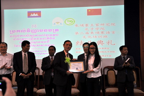 柬埔寨王家研究院孔子学院举行第二届柬埔寨语言文化培训班结业典礼