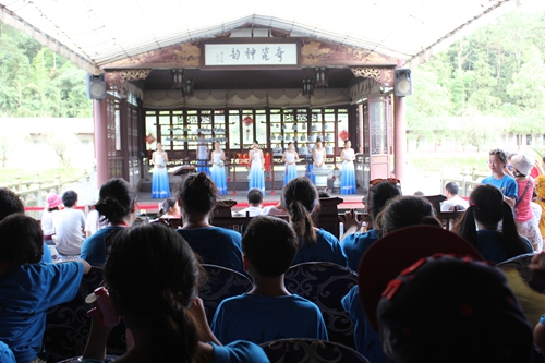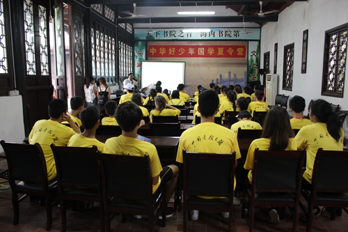 7月25日上午,营员们跟随着导游来到距离九江市区30公里的白鹿洞书院开始中华文化体验之旅。白鹿洞享有“天下书院之首”的名号,营员们来到书院的正门口时,都感叹书院之静、书院之悠。瑞典新星中文学校营员曾语晨说:“原来这就是古代的学校,在这么安静,悠闲的地方上课肯定学习成绩特别好哈!”走进正学门,迈过状元桥,营员们细观碑文,虽显吃力但是很认真诵读每一个字。随后认真听取着中华书院的文化讲座,诵读着白鹿洞的教规“博学之,审问之,慎思之,明辨之”,领队老师们都感叹教规的意义深远,包含做人处事,学习方法,他们希望把这些教规背下来带到他国去传授给外国的学生。