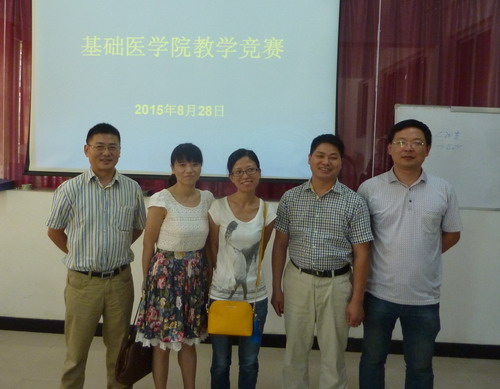本次竞赛基础医学院共有5名教师参加了此次比赛。同时,邀请了护理学院汪小燕教授、基础医学院教授代表、以及各教研室主任担任评委,本次竞赛由副院长郑美蓉主持。