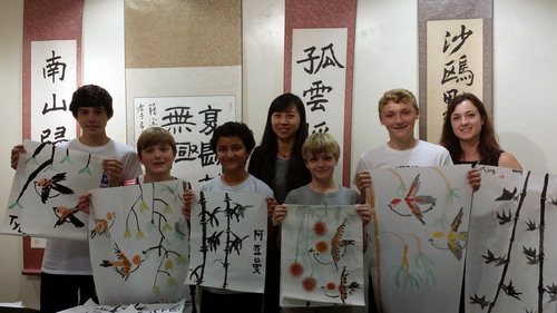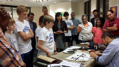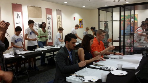 萨凡纳州立大学孔子学院特别邀请来自佛罗里达农业与机械大学视觉艺术系的刘南教授为大家展示中国传统书画艺术。刘教授先简要介绍了中国书法和绘画的基本技巧与内涵,并对大家感兴趣的毛笔的分类及使用做了较详细的介绍,接下来刘教授带着大家一笔一划地写书法画国画,大家都被中国书法和国画的飘逸和具有深刻内涵的意境所吸引,纷纷学习模仿创作出自己的作品。