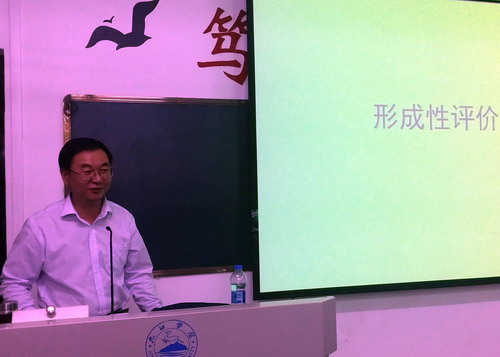 教务处副处长张伏龙首先向大家介绍了什么是形成性评价,形成性评价的主要方式以及教育测量与教育评价间的关系。随后,张副处长与在座的全体教职工就形成性评价在实际教学过程中如何运用、实施评价的目的和意义进行了交流。